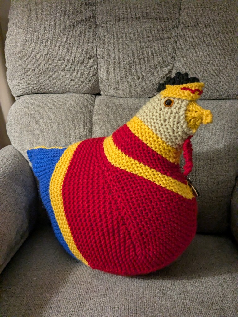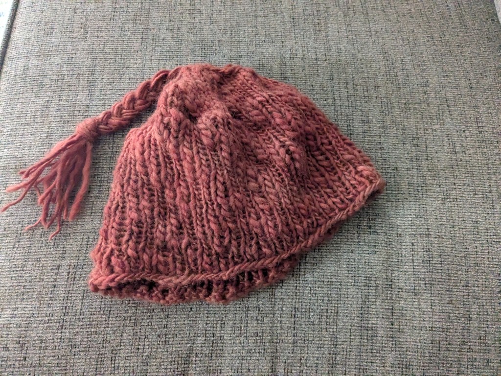 My recent makes range from a protest hat to a soft throw to replacement washcloths. First off the needles was another Emotional Support Chicken, this time as Wonder WomHEN. (Pattern and kit by the Knitting Tree.) The ESC is a super fun make that I highly recommend. Next I finished up another Tumbling Blocks blanket for myself in a gorgeous mustard yellow. (Pattern by Purl SoHo.) This was my second blanket made entirely out of final sale Joann’s yarn that in total cost less than a cup of brewed coffee. I absolutely love this color! It reminds me of fall, of larch trees changing color amongst their pine cousins. Also I made part of this blanket on a beautiful, restorative river trip, so it will forever remind me of that place. Next up are a couple of hats: the Wide Rib hat (Purl SoHo) and the Melt the ICE hat (pattern by Paul Neary). The Melt the ICE hat is a current knitting hit and is fashioned after Norwegian resistance hats of the 1940’s. All proceeds from the pattern go directly to folks in Minnesota impacted by the horrendous incursion. Because all of the liberal knitters bought up all of the red yarn for this pattern, I used some Manos del Uruguay I’d had for years. Currently on the needles is my birthday gift to myself, the Arc Shawl (yep, Purl SoHo again) that uses two yarns knit together for an extra bit of softness and fuzz. Lastly, since you can once again fly with knitting needles, I brought along all of my scrap cotton yarn to make washcloths. Because sponges are gross, y’all!
